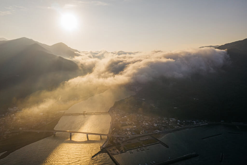 早朝に数々の条件がそろわないと見れない、まるで竜が川を下るような稀少な現象、「肱川(ひじかわ)あらし」の観測に挑むツアー。