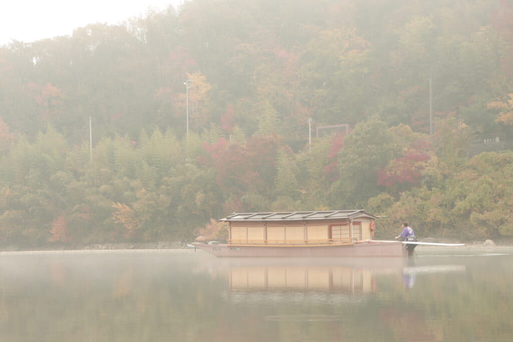 舟から大洲城や、朝もやが立ち込めるまちなみ・山並みの景色をご覧いただけます。ぜひお写真に収めてください。