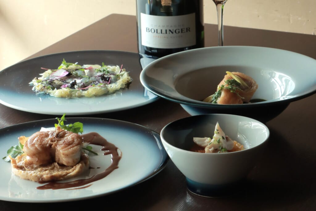 都市部の一流料理店からも高い評価を得ている、大洲市長浜産のとらふぐ。NIPPONIA HOTEL 大洲 城下町のシェフが磨き上げたフレンチの技術を掛け合わせた、フレンチのフルコースをお楽しみいただきます。